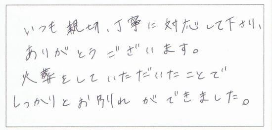 *電話対応の件、ご指摘有り難うございます。24時間対応という事で、バタバタしているときに電話をお受けするとどうしても、急いでしまって、事務的になってしまう傾向があります。今後は改めておかけ直しするなどして丁寧な対応を心がけたいと思います。 |